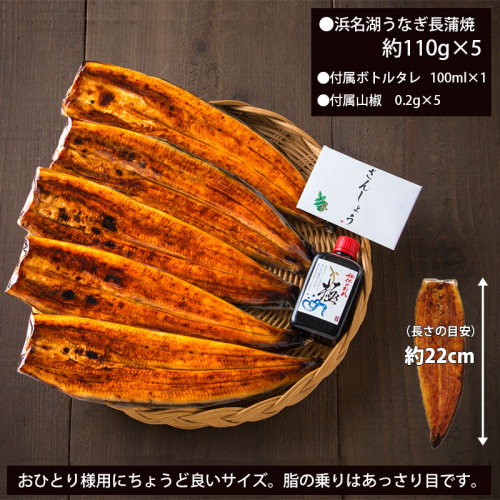【内容】うなぎ長蒲焼(約110g):5尾、付属タレ100ml:1、付属山椒0.2g:5