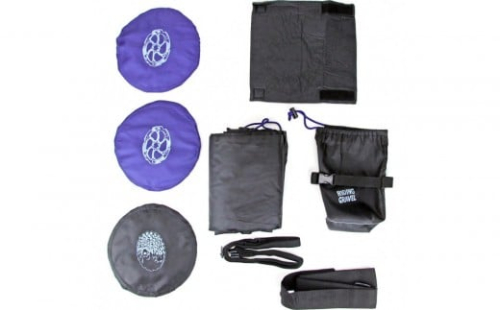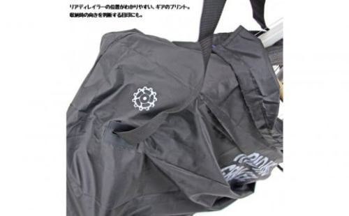 本体収納袋の巾着紐は、車内で手すりに固定するのに役立ちます。スプロケットカバーは最大42Tまで対応します。