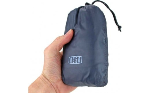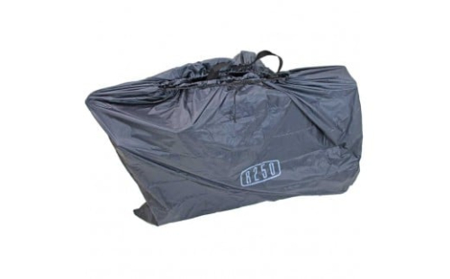 R250の横型輪行袋。バイクをさかさまにして、サドルとハンドルで自立します。ハンドルは正面を向けたままでも収納可能。