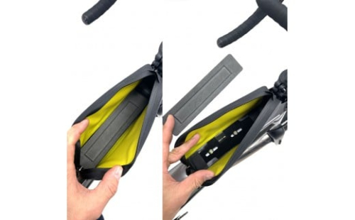 トップチューブとステム(フォークコラム)に取り付けます。スマホや補給食等を入れるのに便利。
