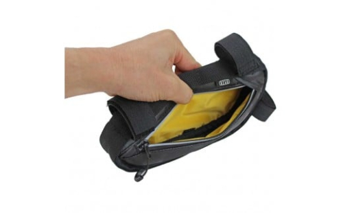 トップチューブバッグをさかさまにしたようなデザインで、スマホや携帯工具、財布やカメラ、予備バッテリーや補給食、自撮り棒やミニ三脚等を入れるのに便利です。