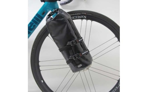 フロントフォークにマウントしたケージに装着できるドライバッグ。トピーク ヴァーサケージ ヴァーサマウント、