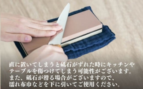 ・また、砥石が滑る場合がございますので、濡れ布巾などを下に引いてご使用ください。