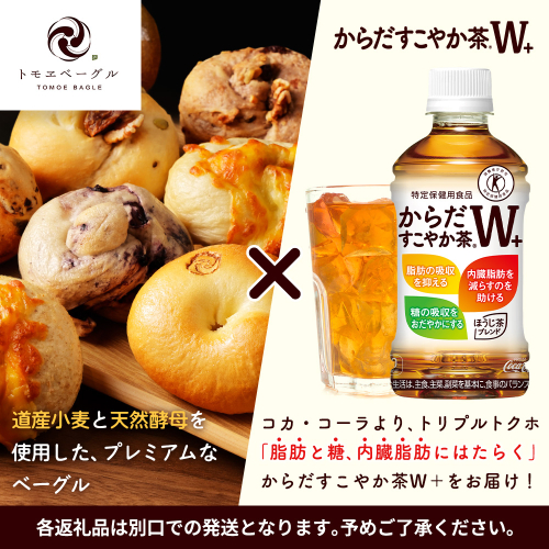 体に優しいからだすこやか茶W+と、道産小麦と天然酵母を使用した、プレミアムなベーグルのセット商品です。