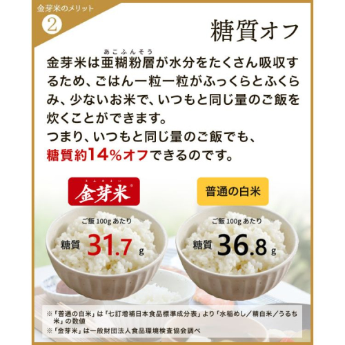 東洋ライス独自の精米技術により、胚芽の舌触りの良くない部分を除いた胚芽の基底部「金芽(きんめ)」と、