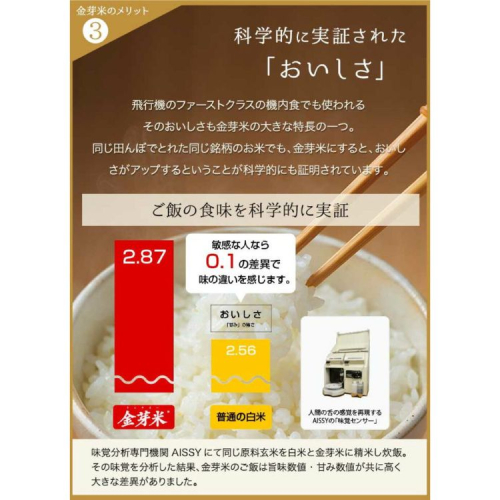 同じ田んぼでとれた同じ銘柄のお米でも、金芽米にするとおいしさがアップするということが科学的にも証明されています。