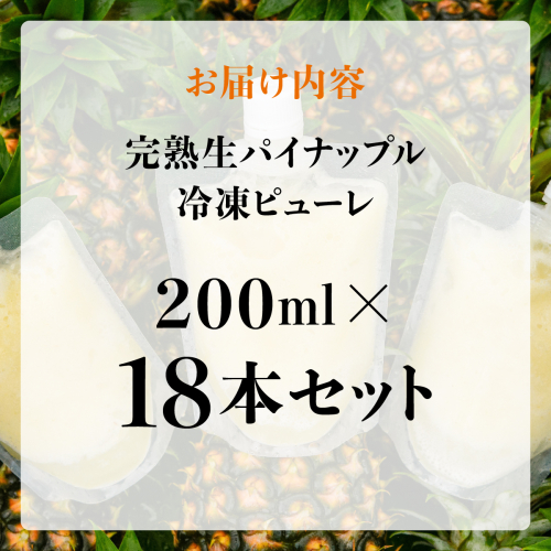 水なし、加熱なし、砂糖なし!天然まるごと!完熟生パイナップル冷凍ピューレ200ml×18本セット 2361135 - 沖縄県竹富町