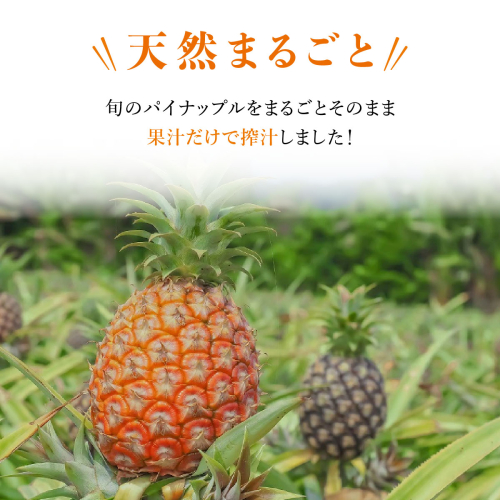 アララガマ農園の旬のパイナップルをまるごとそのまま、水なし、加糖なし、加熱なし、添加物なし、保存料なしの果汁だけで搾汁しました!