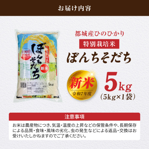 都城産ひのひかり特別栽培米「ぼんちそだち」5kg(5kg×1袋)_16-N501 2361523 - 宮崎県都城市