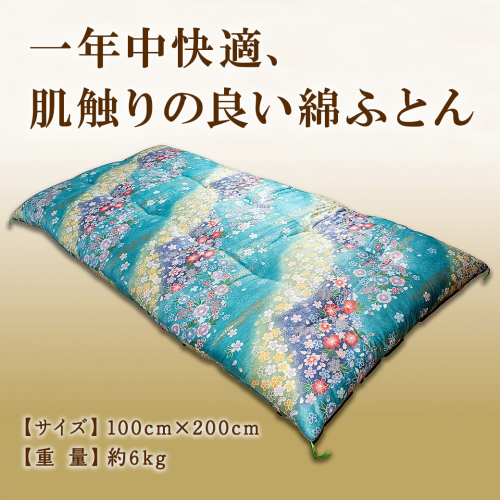 手造り綿敷きふとん 【青系】 寝具 敷きふとん 布団 コットン 綿ふとん K2231