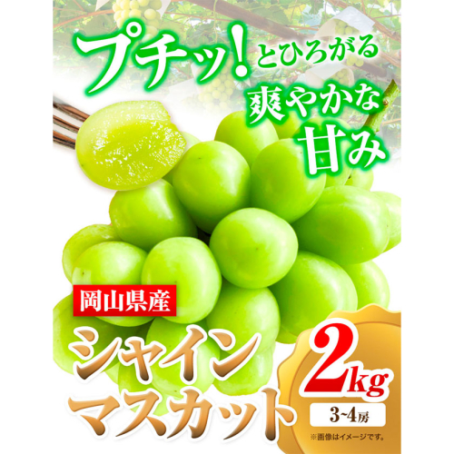 【2026年先行予約】シャインマスカット 岡山県産 2kg 3房 ~ 4房《2026年9月上旬-9月中旬頃出荷》ひらた農園 マスカット 送料無料 岡山県 浅口市 シャインマスカット ぶどう フルーツ 果物 贈り物 ギフト 国産 くだもの 果物 青果物