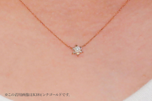 優しい光沢の1粒パールを、繊細な星型モチーフで包み込んだ上品なペンダントです。