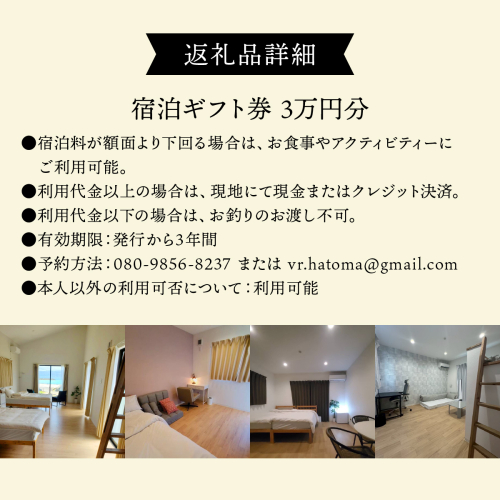 ヴィラ竜宮城鳩間 宿泊ギフト(クーポン)券 3万円分