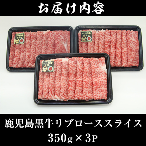 No.1321-B <期間・数量限定>鹿児島黒牛リブローススライス(350g×3P)国産 九州産 黒牛 牛肉 すきやき 牛丼 煮込み セット 冷凍 (M-2301)【さつま日置農協】