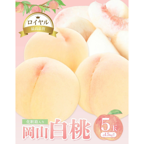 【2026年先行予約】岡山白桃 5玉 (1.5kg以上) 等級ロイヤル 化粧箱入り 株式会社山博 (中本青果)《2026年7月上旬‐8月中旬頃出荷》岡山県 笠岡市 桃 もも フルーツ 旬 果物 国産 岡山県産 送料無料 冷蔵 化粧箱【配送不可地域あり】