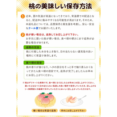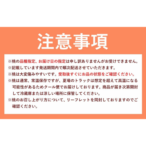 ※桃は通常、常温保存ですが、夏場のトラックは想定を超えて高温になる可能性があるため、クール便でお届けしております。