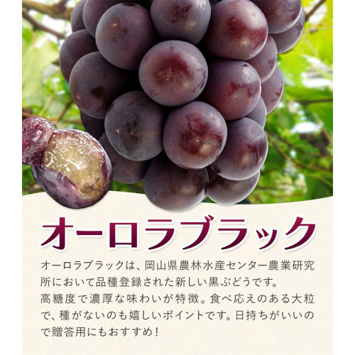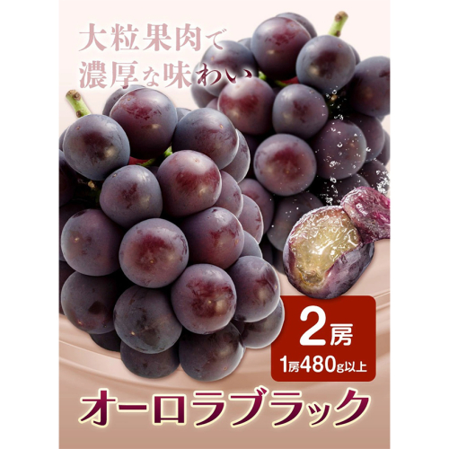 - 【2026年先行予約】ぶどう オーロラブラック フルーツ 2房 (1房480g以上) 化粧箱入り 株式会社山博《2026年8月下旬-9月下旬頃出荷》岡山県 笠岡市 送料無料 ブドウ 大粒 種なし 種無 贈答 果物 旬 国産 岡山県産【配送不可地域あり】