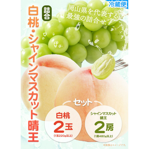 - 【2026年先行予約】桃 ぶどう 詰合 岡山白桃 2玉(1玉220g以上) シャインマスカット 晴王 2房(1房480g以上) 化粧箱入り 株式会社山博《2026年7月下旬-8月中旬頃出荷》岡山県 笠岡市 フルーツ 果物 葡萄 マスカット もも お取り寄せ【配送不可地域あり】