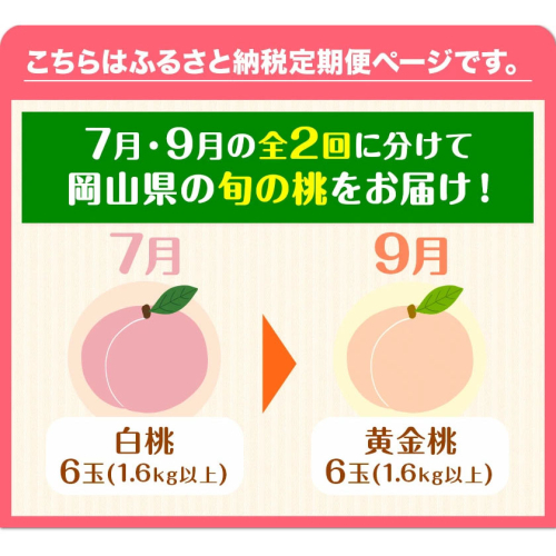 • 【2回定期便】桃 岡山の桃定期便 2回コース 岡山県産 岡山白桃 黄金桃 株式会社山博《2026年7月上旬-9月末頃出荷》岡山県 笠岡市 フルーツ 果物 白桃 もも お取り寄せ【配送不可地域あり】