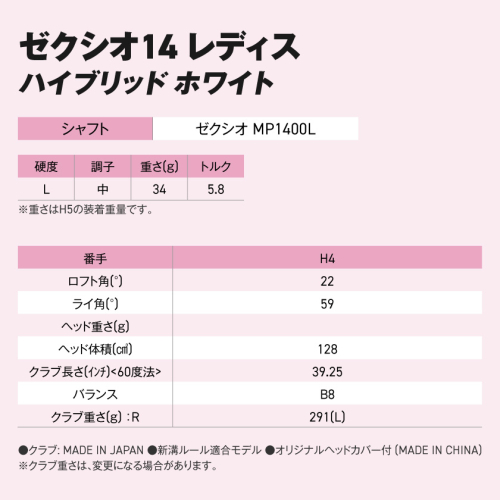 ゼクシオ 14 レディス ハイブリッド ホワイト【H4/L】《2025年モデル》1点