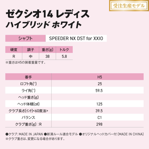 【受注生産】ゼクシオ 14 レディス ハイブリッド ホワイト SPEEDER NX DST for XXIO【H5/R】《2025年モデル》1点