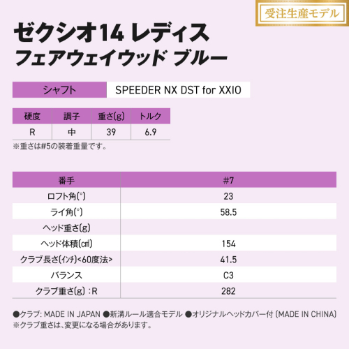 【受注生産】ゼクシオ 14 レディス フェアウェイウッド ブルー SPEEDER NX DST for XXIO【7/R】《2025年モデル》 1点