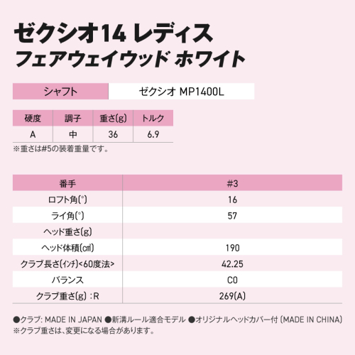 ゼクシオ 14 レディス フェアウェイウッド ホワイト【3/A】《2025年モデル》_IG-C704-3A