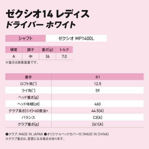 ゼクシオ 14 レディス ドライバー ホワイト【12.5/A】《2025年モデル》 1点