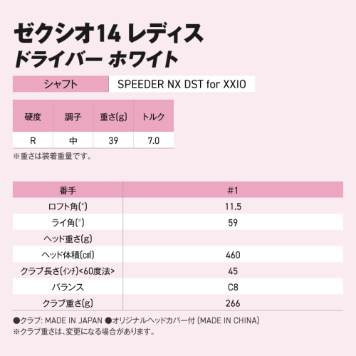 ゼクシオ 14 レディス ドライバー ホワイト SPEEDER NX DST for XXIO【11.5/R】《2025年モデル》 1点