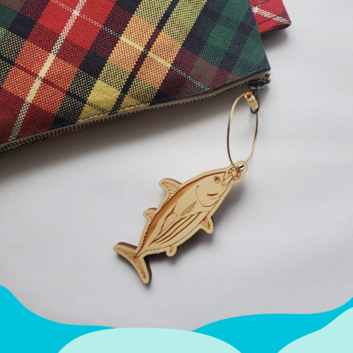 - <ヒノキ薫る 魚のウッドキーホルダー> 海の魚 カツオ アジ カンパチ マルソウダ メジカ アオリイカ スルメイカ カワハギ カサゴ ガシラ マダイ 真鯛 鰹 船 釣り 檜 桧 ひのき 高知県 佐川町 青木丸
