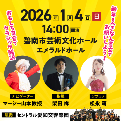 碧南市芸術文化ホール「1/4 ニューイヤー・オーケストラコンサート」チケット 音楽 クラシック 楽器 演奏 ソプラノ 歌手 新年 初笑い ホール コンサート チケット 券 H202-001