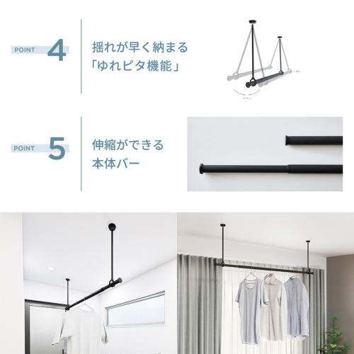 - TOSO 簡単着脱・ゆれピタ機能がやさしい ランドリーバーLB-1 高さ25cm 伸縮ポール(Sサイズ付)黒 室内干し ランドリーバー ハンガーバー 花粉対策 簡単 取付 モノトーン ランドリールーム バスルーム リフォーム DIY [BD246-NT]