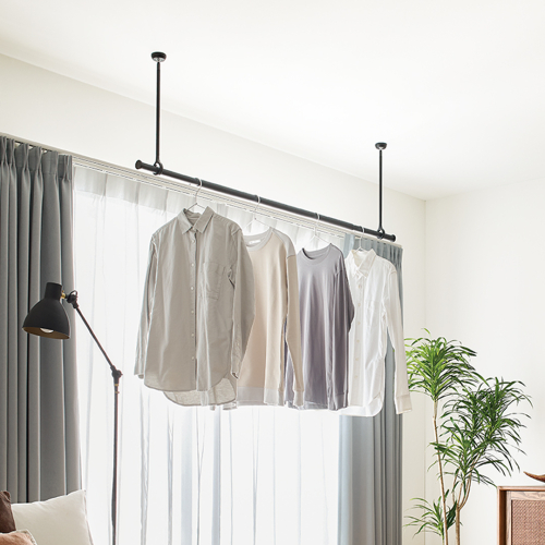 ハンガーバーは伸縮タイプのため、設置スペースや吊るす量に合わせて調整することができます。