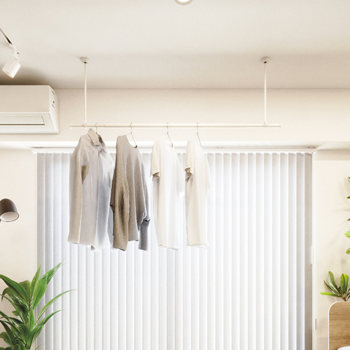 インテリアメーカーが手掛ける室内用ランドリーバーです。マット仕上のモノトーンカラーはお部屋全体にもなじみ、おしゃれな空間を演出します。