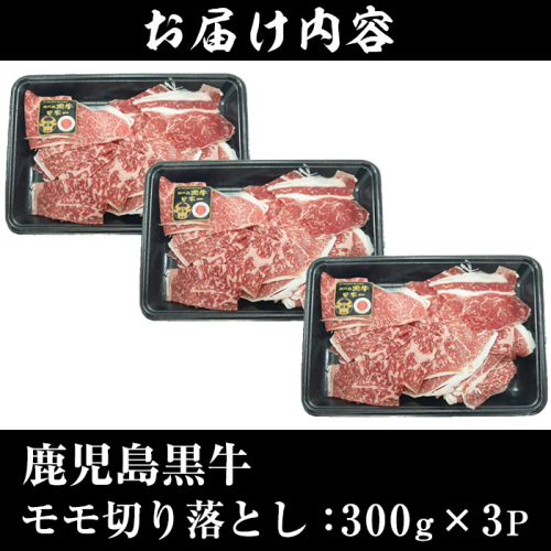 No.1320-m03 <数量限定>2026年3月中に発送!(J-1901)鹿児島黒牛モモ切り落とし(300g×3P・計900g) 国産 九州産 黒牛 牛肉 すきやき 牛丼 煮込み セット 冷凍 【さつま日置農協】