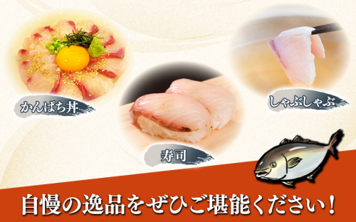 一般的なカンパチに比べて旨味とコクがより強く、身の締まりが良く脂の甘みが際立つ、上品で豊かな味わいが特徴です。