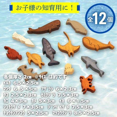 木製パズル おうちで水族館 12種の海のいきものセット いるか くじら かめ たこ いかかに チョウチンアンコウ アザラシ シュモクザメ ジンベエザメ サメ 鮫 魚 水族館 安心塗装 クラフトバードウッド 河内長野 大阪 木工