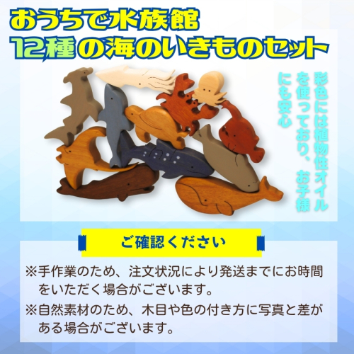 - 木製パズル おうちで水族館 12種の海のいきものセット いるか くじら かめ たこ いかかに チョウチンアンコウ アザラシ シュモクザメ ジンベエザメ サメ 鮫 魚 水族館 安心塗装 クラフトバードウッド 河内長野 大阪 木工