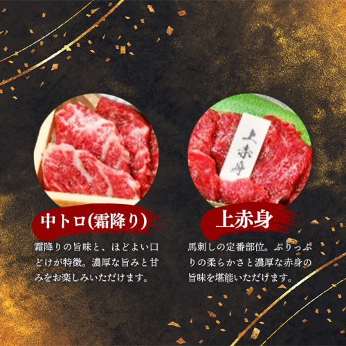 馬刺しの中でも人気の部位をお手軽にご堪能できるセットです。