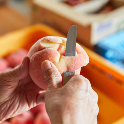 食べごろの目安は好みにもよりますが、優しく触っていただきお好みの硬さでお召し上がりください。(注意:桃はデリケートな果物ですので、強く押してしまうと中が変色してしまう場合がございます)