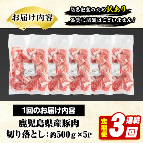 <定期便・全3回(連続)>訳あり!鹿児島県産 豚肉切り落とし (計7.5kg) 切り落とし こま切れ 国産 鹿児島県産 豚肉 ブタ おかず バラ肉 個包装 小分け 薄切り 切り落し 切落し 冷凍配送 小間切れ コマ 訳アリ 【スターゼン】akn042-52