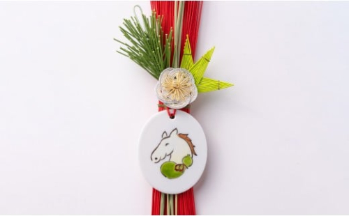 【期間限定 12月31日までの限定返礼品です】 干支飾りは、一年の無事を願う縁起物です。 厄を吸い込むという水引を使った縁起飾り、一年間家の中に飾ります。 馬のオーナメントを付けたお正月飾り、来年の家内安全を祈ってお飾りください。 ※年内にお届けするには、12月5日までにご依頼ください。 ※手作り手描きの為、微妙な違いがありますことをご了承ください。 ※白バーションの干支飾りも掲載しております。 提供:肥前赤絵窯元 鷹巣