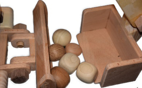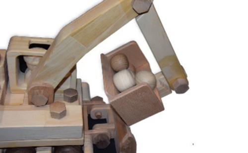 360度回転、クローラー走行、3ヒンジのアームバケットと本物のショベルの機能がほぼ揃っています。全てのパーツが木です、そして最大の特徴はホールトナットを付属のスパナ2本を使い組み立て解体ができることです。