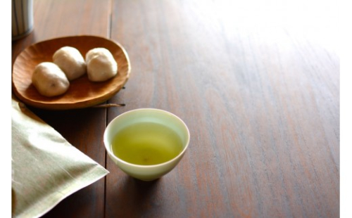 「やぶきた」の一番茶葉を蒸して独特の丸い形に製茶し、丁寧に火入れした緑茶です。渋みが少なく、素朴で軽やかな味わいが特徴。