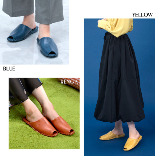 シックな印象と耐久性を兼ね備えた「レガシー」素材のルームシューズ。