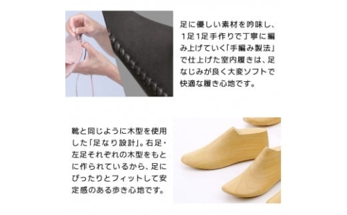 上品な艶感のある素材「レガシー」を使用したメンズルームシューズ。