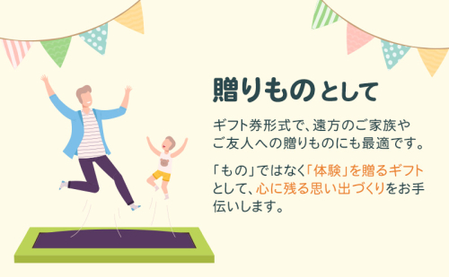 - 「トランポリンパーク浜松」ご招待券2,500円分(ギフトカード 1,000円券×1枚、1,500円券×1枚)