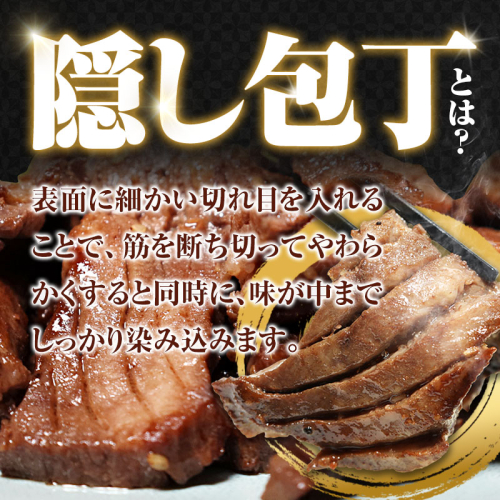 隠し包丁でやわらかく、旨み染み込むワイルドな牛タンステーキ