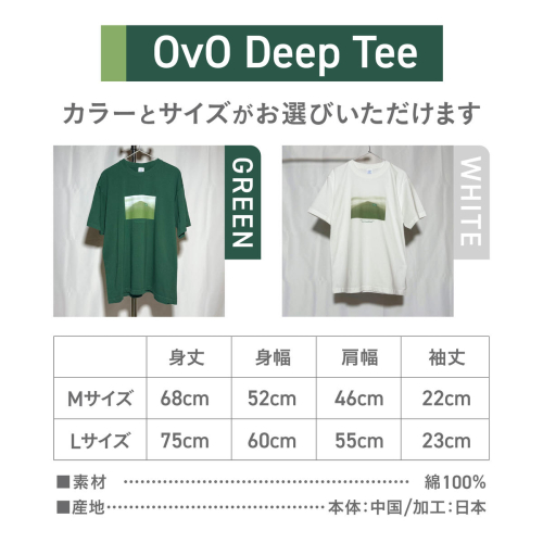 - Tシャツ 半袖 GREEN / WHITE 【サイズ M / L】 綿100% 「 OvO Deep Tee 」 ユニセックス