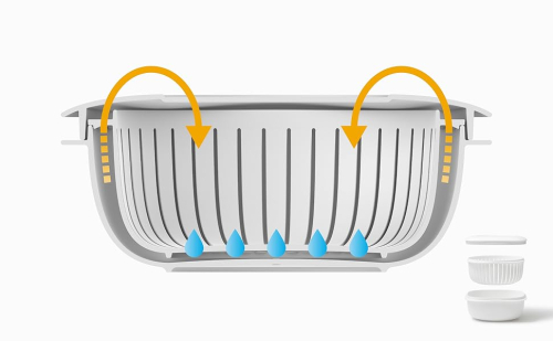 さらに、温めた後に外側が熱くなりすぎるのを防いだり、お茶碗にごはんを移しやすかったりと丸いザルが大活躍。
